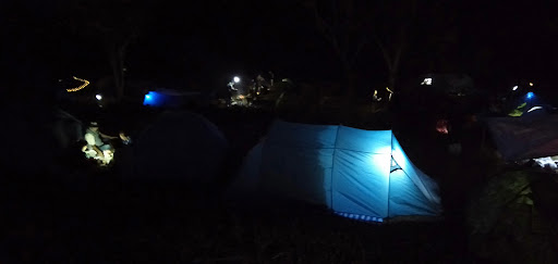 พักด้วยการกางเต็นท์ ทั้งเต็นท์นำมาเองและบริการเช่าเต็นท์ ค่ากางเต็นท์เป็นแบบบริจาคตามศรัทธา