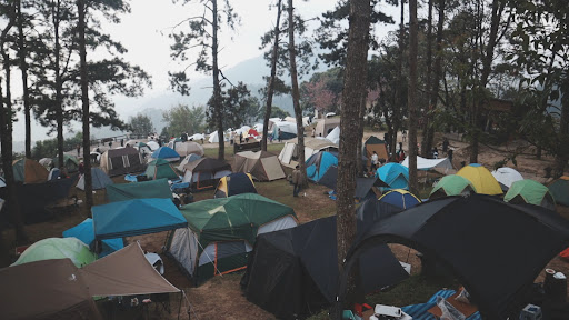 สำหรับที่พัก มีเต้นท์หลากหลายขนาดให้เช่า พร้อมที่นอนและผ้าห่ม หรือจะนำเต้นท์มาเองก็ได้ แต่พื้นที่กางเต้นท์เป็นขั้นบันไดอาจต้องเลือกที่ให้ดีสำหรับความสะดวก