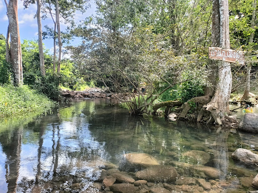บรรยากาศเงียบสงบ เหมาะสำหรับการพักผ่อนหนีความวุ่นวาย มีความร่มรื่นจากต้นไม้และเสียงน้ำไหลรินที่สร้างความผ่อนคลาย