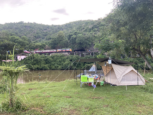 ห้องน้ำที่สะอาดและใหญ่ที่สุด, วิวรถไฟสายมรณะตรงหน้าจากลานกางเต็นท์, บริการที่เป็นมิตรและอบอุ่นเหมือนอยู่บ้าน