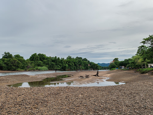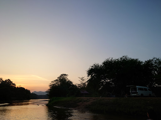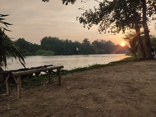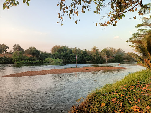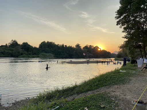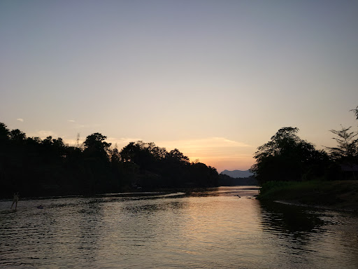 วิวแม่น้ำแควใหญ่สวยงาม น้ำใสสะอาดปิ๊ง เห็นเนินหินเวลาแห้ง เดินเล่นเพลินเลย บรรยากาศธรรมชาติร่มรื่นติดริมน้ำ