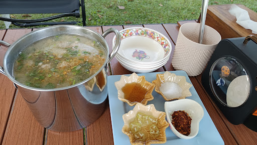มีอาหารบริการหลากหลาย เช่น หมูกระทะ อาหารเช้าข้าวต้มหมู และผัดไท รสชาติอร่อยและบริการถึงที่พัก