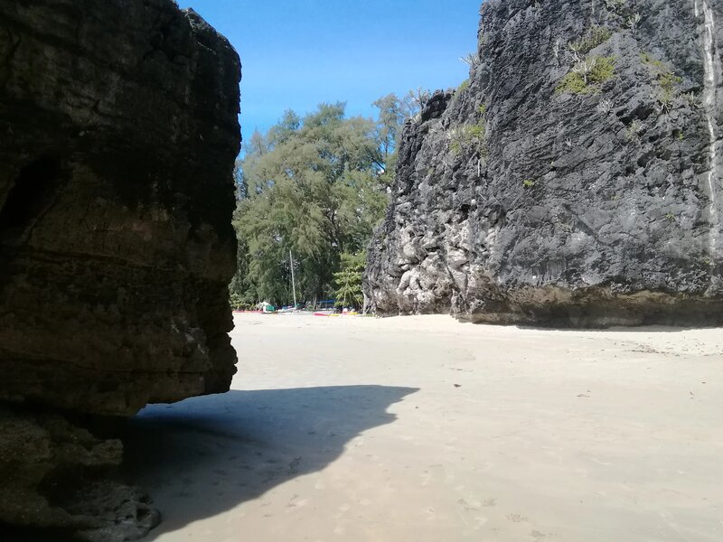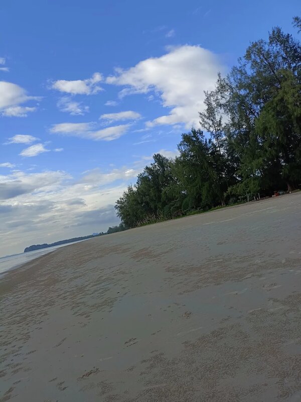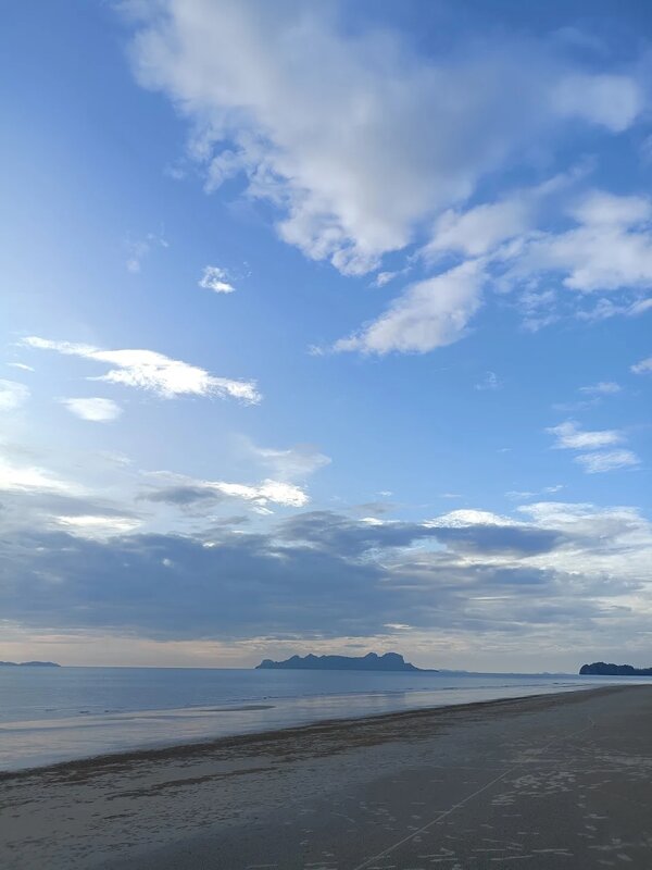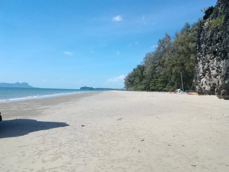 หาดทรายยาวสุดลูกหูลูกตา ทะเลสีฟ้าใสแจ๋ว และมีทิวเขาเป็นฉากหลังที่สวยงาม