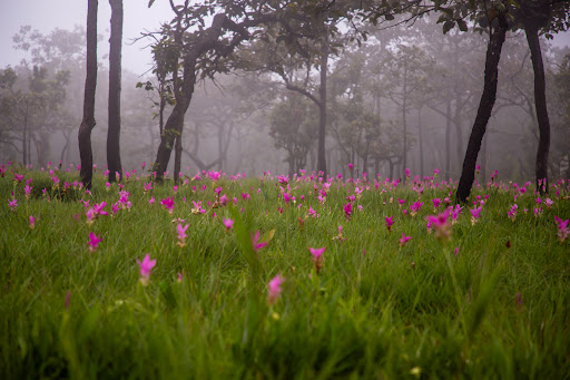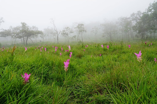 ทุ่งดอกกระเจียวบานสะพรั่งในฤดูฝน หินรูปร่างประหลาด และจุดชมวิวผาสุดแผ่นดิน