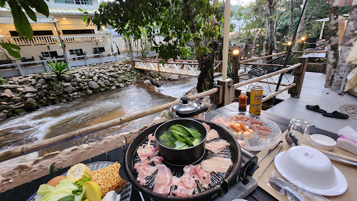 อาหารเช้าร้อนๆ เสิร์ฟถึงที่ เช่น ข้าวต้มอร่อย อาหารเย็นมีหมูกระทะและซี่โครงหมูอบ รสชาติดี