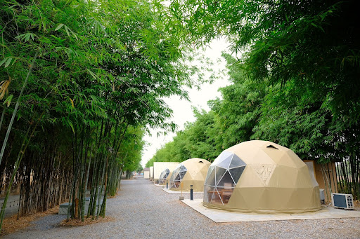 สวนไผ่สวยๆ กิจกรรมสำหรับครอบครัว เป็น Pet friendly และมีสระว่ายน้ำส่วนตัวในบางโดม บรรยากาศฟีลแคมป์ปิ้ง