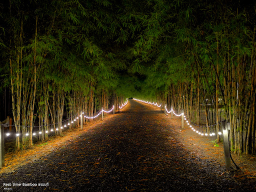 สวยงามด้วยสวนไผ่เขียวขจี บรรยากาศเหมือนญี่ปุ่น มีอุโมงค์ไม้ไผ่และวิวภูเขาไกลๆ ให้ชม ถ่ายรูปเพลินเลย