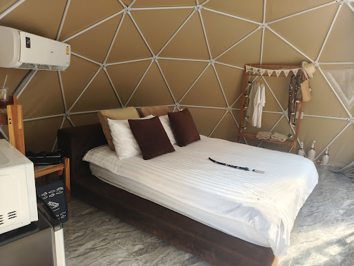 มีที่พักหลากหลายแบบให้เลือก ทั้งโดมครอบครัว โดมเดลักซ์ บ้านหลังเล็ก และเต็นท์ เตียงกว้างนอนสบาย บางแบบมีอ่างแช่น้ำส่วนตัวด้วย