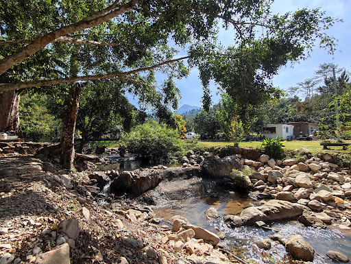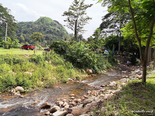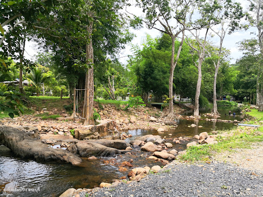 สถานที่ตั้งอยู่ริมลำธารน้ำใสเย็นฉ่ำ ท่ามกลางธรรมชาติเขียวขจี บรรยากาศร่มรื่นด้วยต้นไม้และสวนส้มโอ น้ำในลำธารอาจมีปริมาณแตกต่างกันตามฤดูกาล แต่ยังคงความสวยงามและให้ความรู้สึกสดชื่น