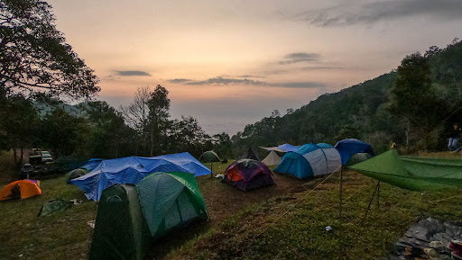 มีลานกางเต็นท์กว้างขวางในหลายระดับสำหรับตั้งแคมป์ เต็นท์สามารถเช่าได้จากอุทยาน สะดวกสำหรับการพักค้างคืน