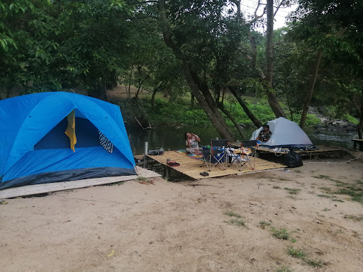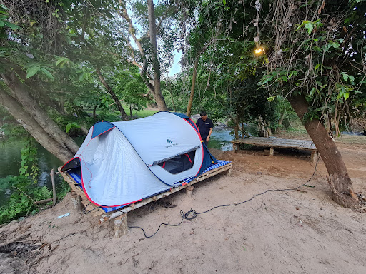มีลานกางเต็นท์ริมน้ำที่แบ่งเป็นส่วนตัว ๆ บางจุดสามารถจอดรถแคมป์ได้ และมีบริการเต็นท์ให้เช่าสำหรับผู้ที่ไม่มีอุปกรณ์เอง
