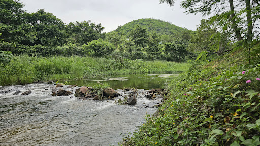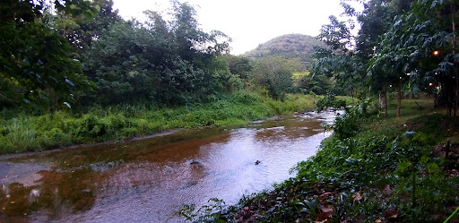 แม่น้ำใสไหลเย็นให้เล่นน้ำได้ ทรายนุ่มเท้าสบาย มีต้นไม้ใหญ่และหญ้าเขียวขจี รอบๆ บรรยากาศธรรมชาติสุดๆ