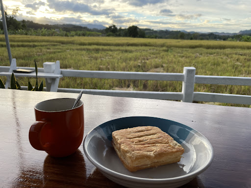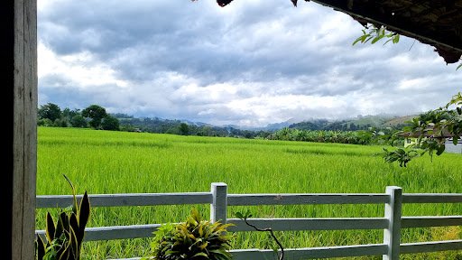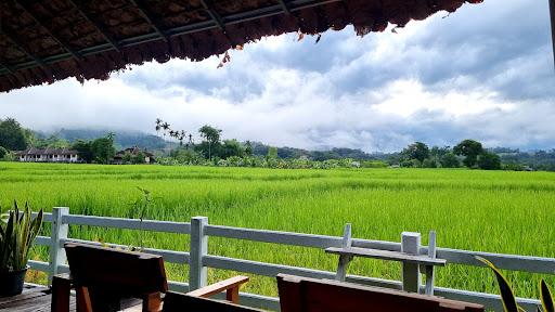 ทิวทัศน์สวยงามด้วยทุ่งนาข้าวและภูเขา เหมาะสำหรับการชมวิวธรรมชาติที่เงียบสงบ