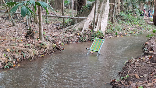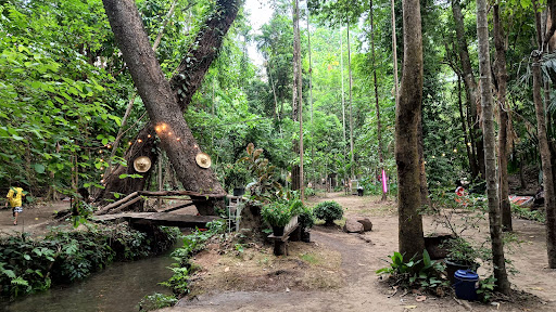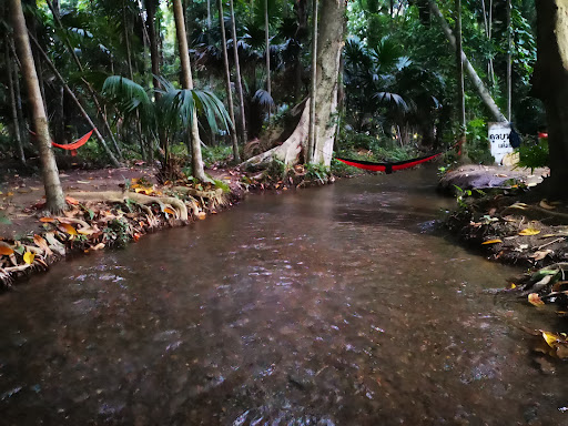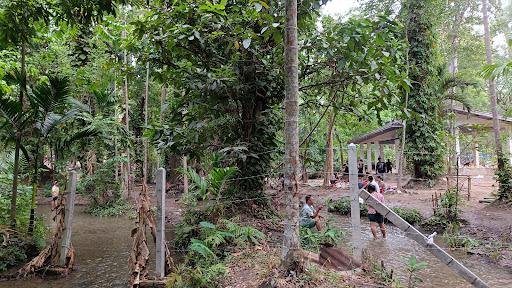 สถานที่แห่งนี้มีธารน้ำใสเย็นที่มองเห็นปลาแหวกว่ายได้ ทิวทัศน์เขียวขจีและร่มรื่นจากธรรมชาติรอบข้าง