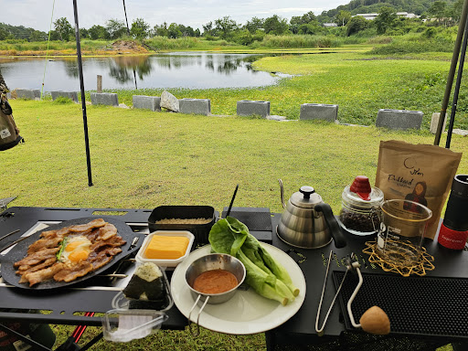 ไม่มีอาหารขายในลาน แนะนำให้เตรียมมาเองหรือสั่งจากร้านข้างนอกที่สามารถส่งถึงที่ได้ รวมถึงน้ำแข็ง