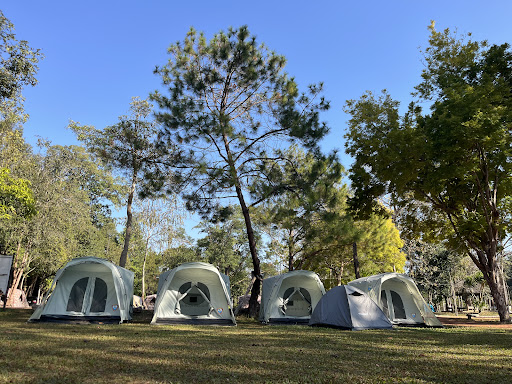 มีลานกางเต็นท์กว้างขวางทั้งลานหญ้าและลานใต้ต้นไม้ให้เลือกตามชอบ รวมถึงมีบ้านพักและเต็นท์ให้เช่า