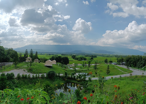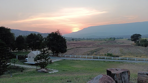 วิวสวยงามตระการตา มองเห็นเขาภูหลวงทั้งลูกและทุ่งนากว้างขวาง ยามเช้ามีหมอกบางๆ เพิ่มความโรแมนติก
