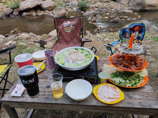มีไฟฟ้า น้ำอุ่น อ่างล้างภาชนะ ตาข่ายนอนเล่น ที่จอดรถ และอุปกรณ์สำหรับแคมป์ปิ้ง รวมถึงโต๊ะเก้าอี้ให้ใช้