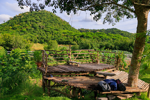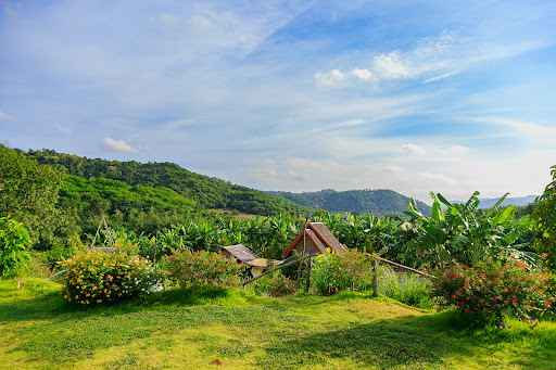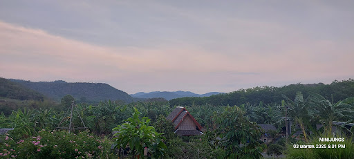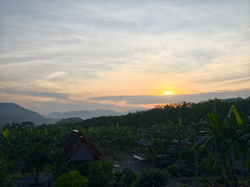 ที่นี่มีวิวภูเขาสวยงาม ตัดกับท้องฟ้าและไร่กล้วย มองเห็นพระอาทิตย์ขึ้นอย่างงดงาม บนเนินเขาที่รายล้อมด้วยต้นไม้ดอกไม้สีสันสดใส ธรรมชาติป่าเขาอันงดงาม