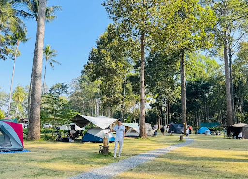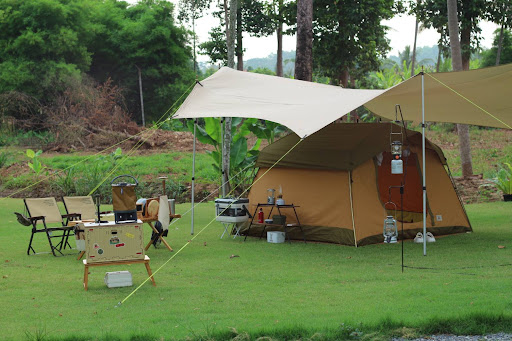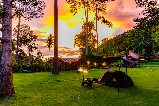 ลานกางเต็นท์แห่งนี้มีทิวทัศน์ธรรมชาติที่สวยงามมาก! ลานหญ้าเขียวขจีกว้างขวาง ต้นยางนาสูงใหญ่ให้ร่มเงา มีลำธารเล็กๆ ไหลผ่านเพิ่มความสดชื่น และภูเขารอบข้างที่มองแล้วสบายตา เหมาะสำหรับคนรักการถ่ายรูปเป็นที่สุด!