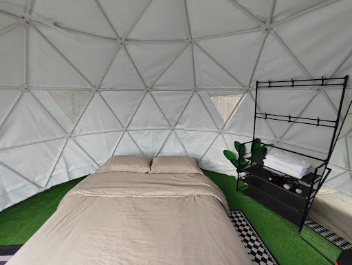 มีเต็นท์และโดมให้เลือกพัก เตียงนอนสบาย ผ้าห่มหนาอุ่น บางแบบมีห้องน้ำในตัว