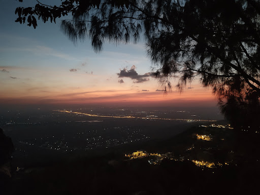 วิวสวยตาแตกจากมุมสูง มองเห็นทางด่วน M6 พาดผ่านภูเขาและแสงไฟเมืองปากช่องยามค่ำคืน โรแมนติกสุดๆ! มีจุดถ่ายรูปมากมายให้เก็บภาพประทับใจ
