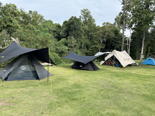 มีพื้นที่กางเต็นท์กว้างขวางทั้งริมน้ำและบนลานหญ้า เต็นท์สะอาดและนอนสบาย
