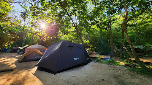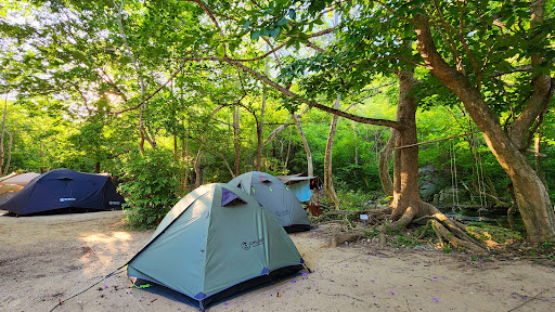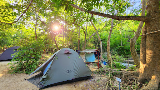 มีพื้นที่กางเต็นท์แบ่งเป็นโซนด้านบนและโซนริมน้ำ เต็นท์แต่ละหลังมีระยะห่างกันพอควร ไม่เบียดเสียดกัน ร่มรื่นจากต้นไม้ใหญ่ช่วยให้ไม่ร้อน