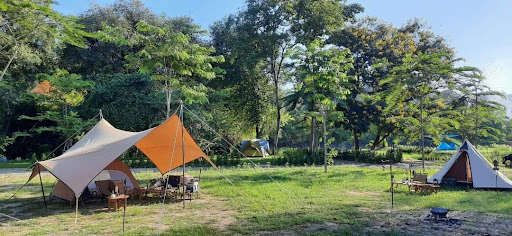 ที่พักเป็นเต็นท์สำหรับกางแคมป์ มีทั้งพื้นที่ริมน้ำและลานหญ้าให้เลือก นอนสบายและปลอดภัย